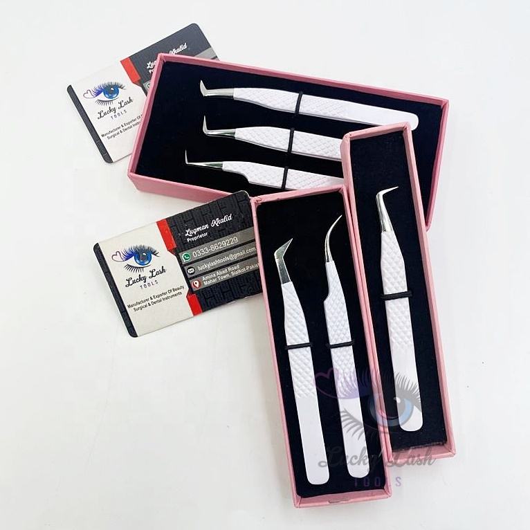 แหนบถอนขนตาปลอมทำจากสเตนเลสรูปตัว D แหนบถอนขนตาสีขาวติดคิ้วพร้อมฉลากส่วนตัว