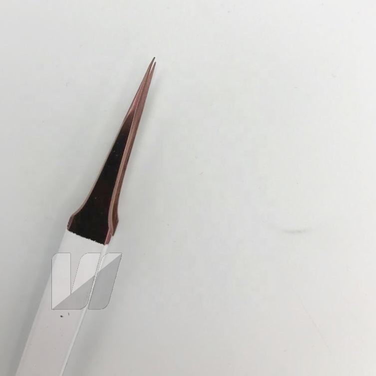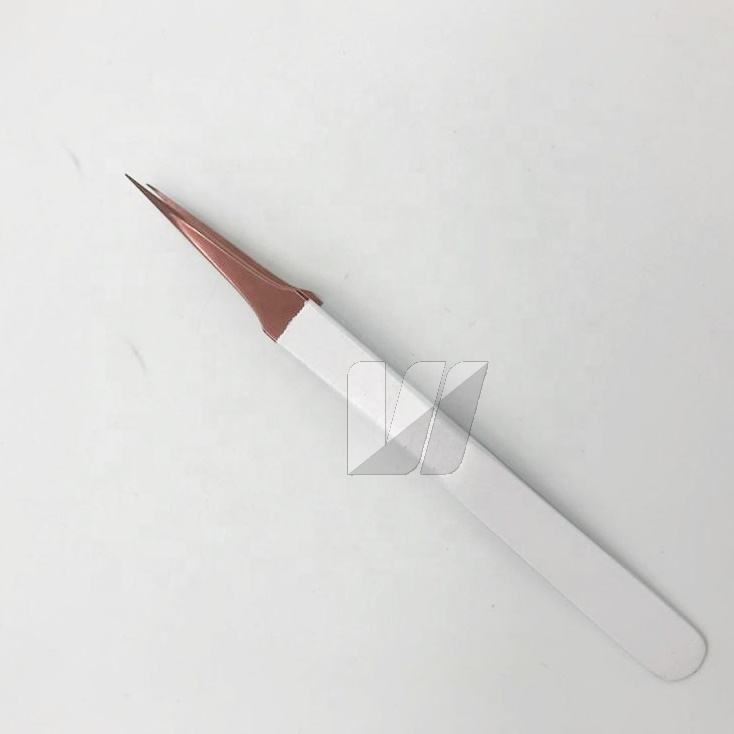 แหนบต่อขนตาสแตนเลสสีขาวเคลือบสีทองปลายแหลมออกแบบโลโก้ได้ตามต้องการ