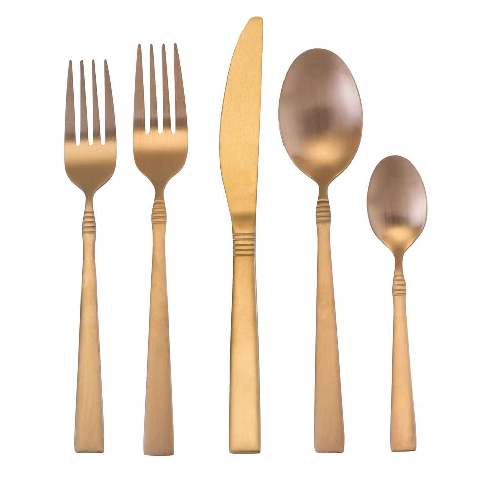 ชุดเครื่องใช้บนโต๊ะอาหารสแตนเลสคุณภาพสูงชุดเครื่องใช้บนโต๊ะอาหาร5ชิ้นที่ปลอดภัยสำหรับร้านกาแฟบ้านชุบสีทอง