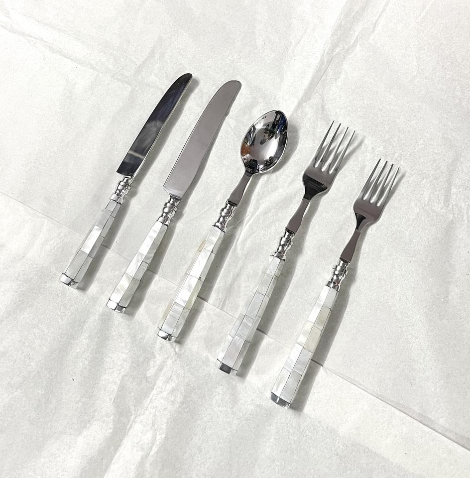 ชุดช้อนส้อมสแตนเลสคุณภาพสูงพร้อมด้ามจับมุก ชุดช้อนส้อมมีดสำหรับรับประทานอาหาร ขัดเงาอย่างดี