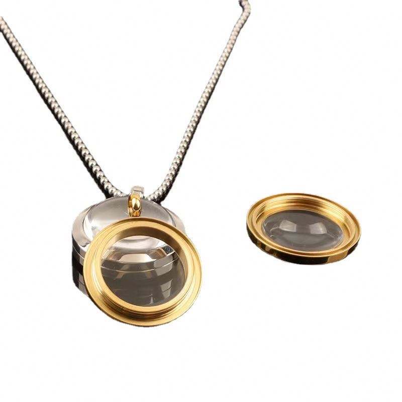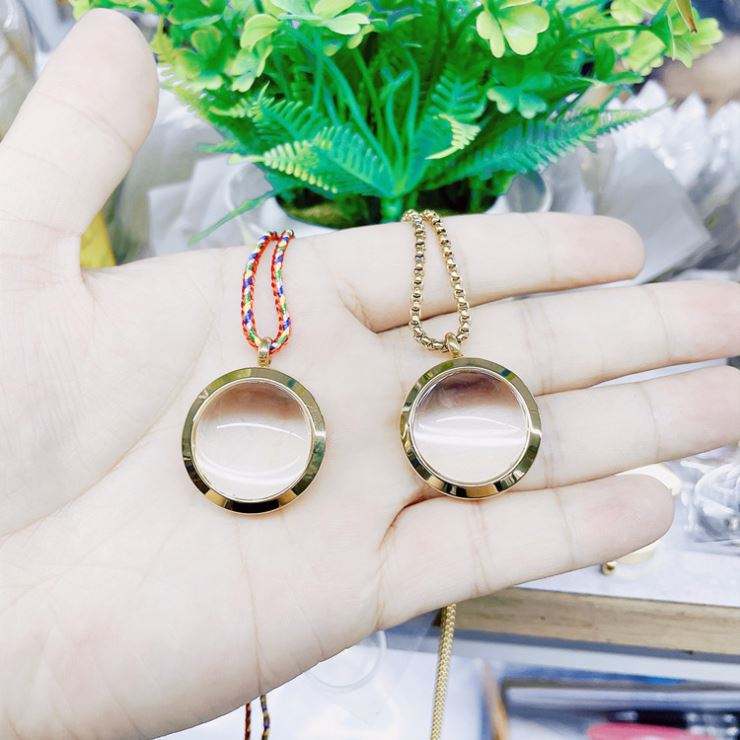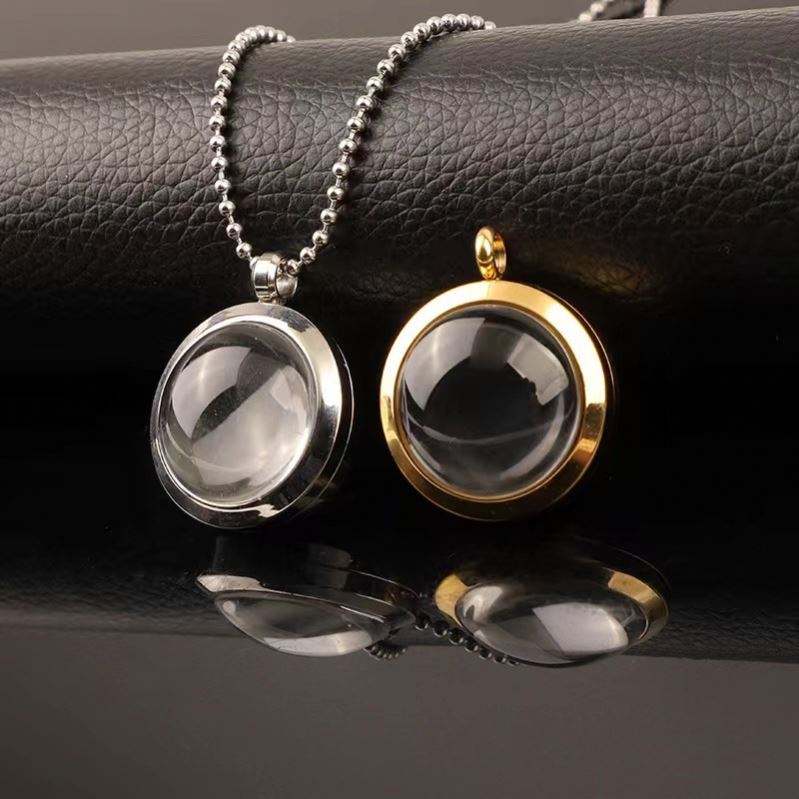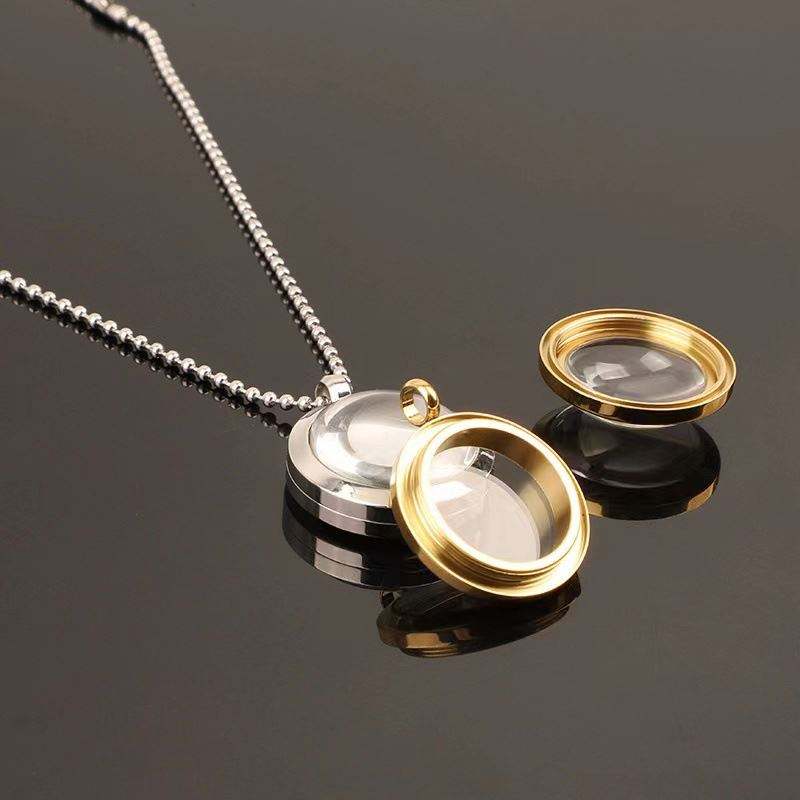 สร้อยคอล็อกเกตหน้าต่างทำจากแก้วความทรงจำทรงกลมจี้ห้อยคอแบบลอยตัวทำจากสเตนเลสสตีล