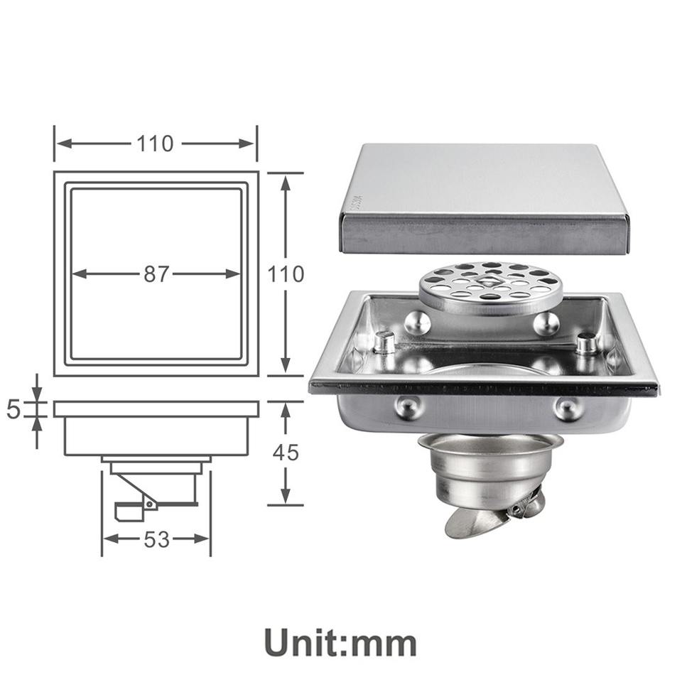 ท่อระบายน้ำบนพื้นทำจากสเตนเลสสตีลขนาด150มม. มีช่องระบายน้ำขนาดใหญ่ที่มองไม่เห็นมีกลิ่นไม่พึงประสงค์