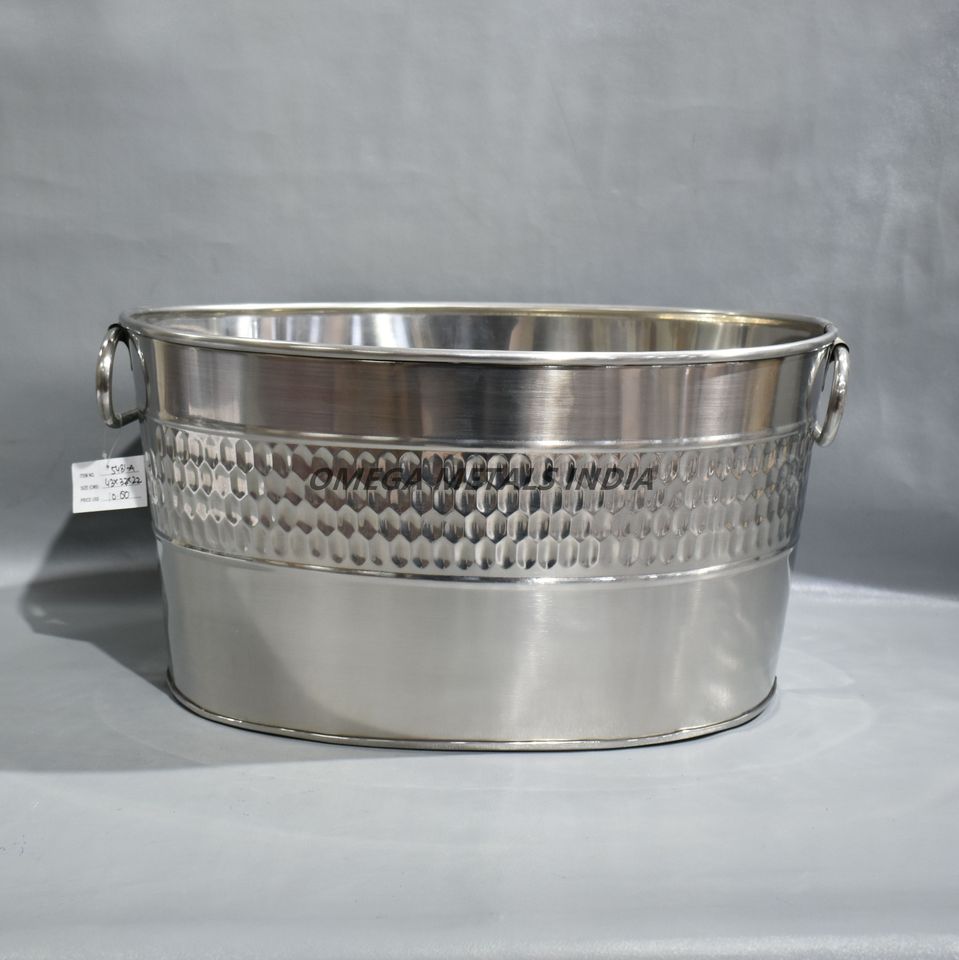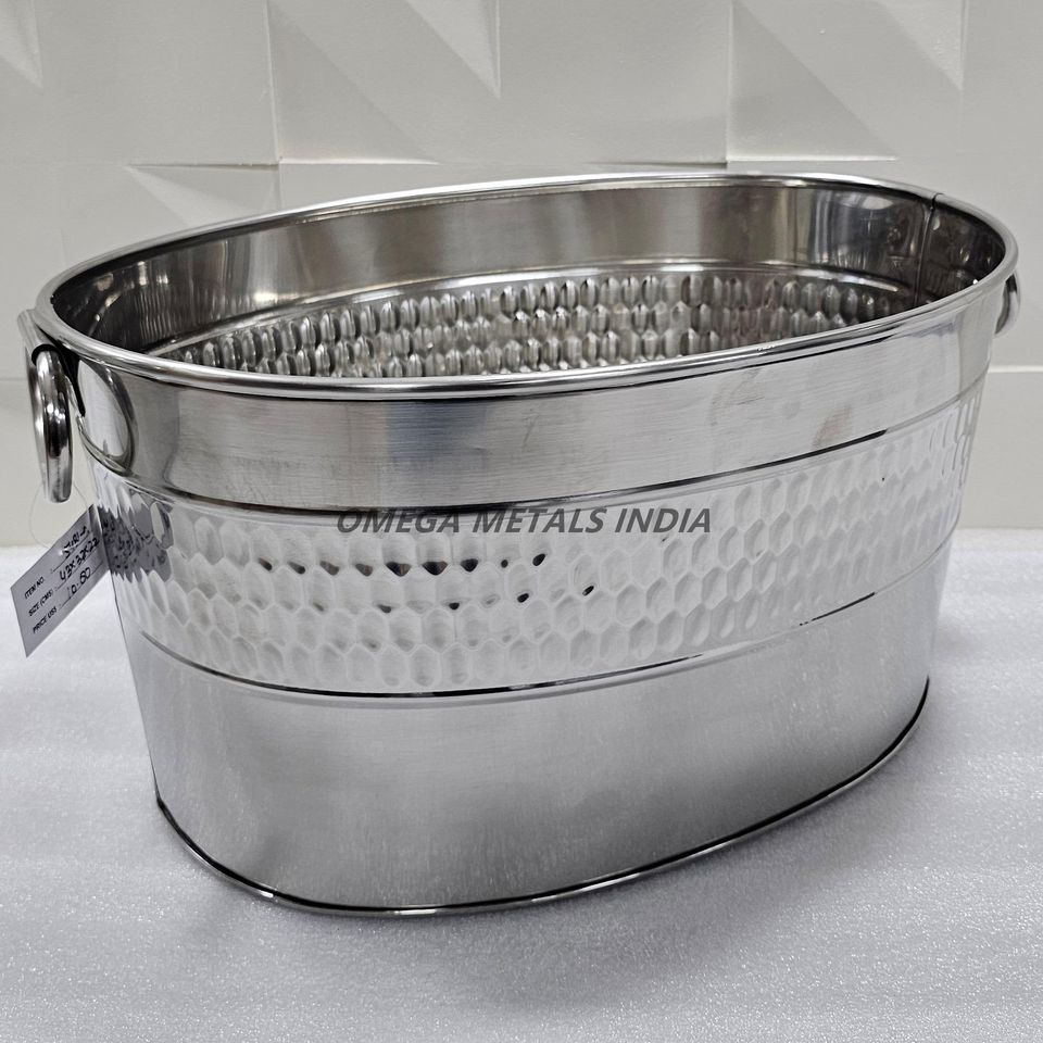 ถังน้ำแข็งสแตนเลสคุณภาพสูงแบบตอกลาย พร้อมที่แช่ไวน์ ถังแช่เครื่องดื่มขนาดใหญ่ ดีไซน์หรูหรา พร้อมหูจับ สำหรับงานอีเว้นท์และรับประทานอาหาร
