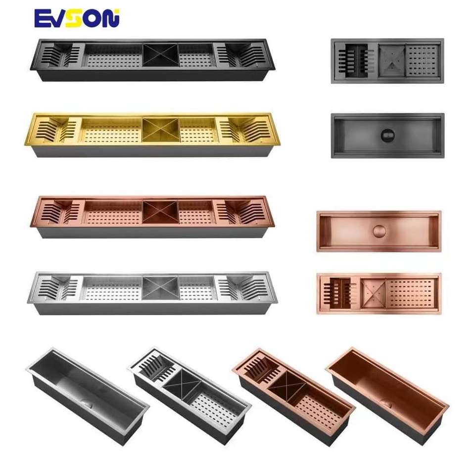 ชั้นวางจานทำด้วยมือทำจากสแตนเลสมีอ่างล้างจานแบบเดี่ยวทรงสี่เหลี่ยมในตัวพร้อมอุปกรณ์สำหรับห้องครัวแบบสองรู