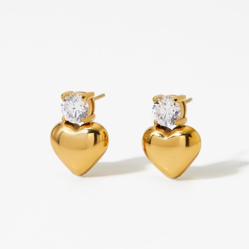 ต่างหูรูปหัวใจสแตนเลสคุณภาพสูง ดีไซน์ใหม่สุดคลาสสิก ชุบทอง ประดับเพชรคิวบิกเซอร์โคเนียขนาดเล็ก เครื่องประดับแฟชั่น