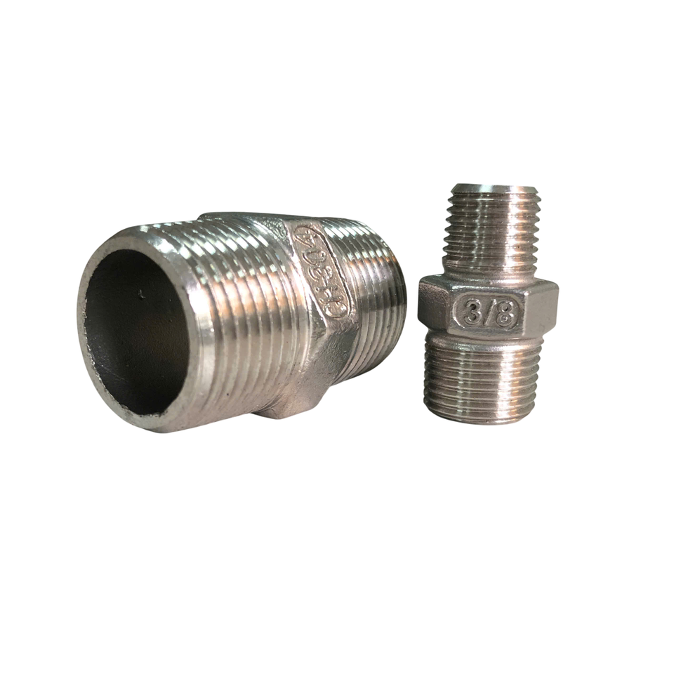 ข้อต่อหกเหลี่ยมสแตนเลสคุณภาพสูง ขนาด 3/8 นิ้ว ผิวเรียบ บรรจุภัณฑ์พร้อมโลโก้ OEM ตามสั่ง สำหรับอุตสาหกรรมหลากหลายประเภท