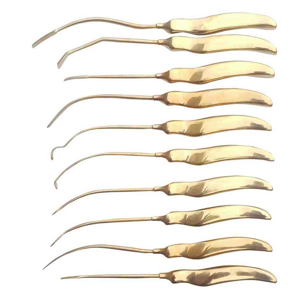 ชุดเครื่องมือผ่าตัดด้วยกล้องส่องตรวจทางทวารหนักสำหรับยกกระชับใบหน้า ทำจากสแตนเลสคุณภาพสูง ด้ามจับสีทอง ใช้ซ้ำได้ พร้อมอุปกรณ์ผ่าตัดพลาสติก