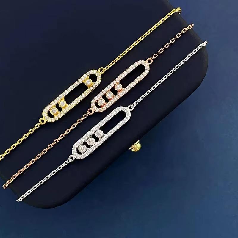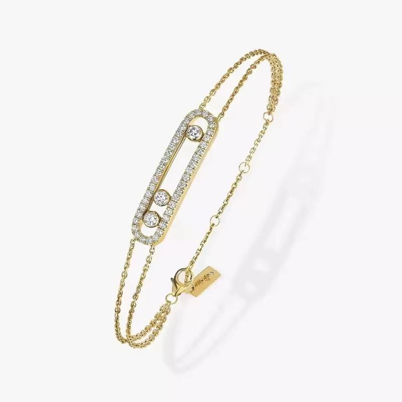 สร้อยข้อมือสแตนเลสสตีลชุบทองคุณภาพสูงสำหรับผู้หญิง ประดับเพชรซิร์คอนรูปตัวยูสองชั้น ดีไซน์คริสเตียนทันสมัย เหมาะสำหรับงานแต่งงาน