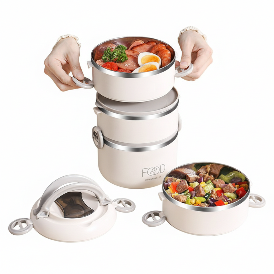 กล่องข้าวเก็บอุณหภูมิสำหรับผู้ใหญ่ สแตนเลส เก็บความร้อนได้ ป้องกันการรั่วซึม ซ้อนกันได้ พกพาสะดวก อุ่นได้ กล่องเก็บรักษาอาหาร