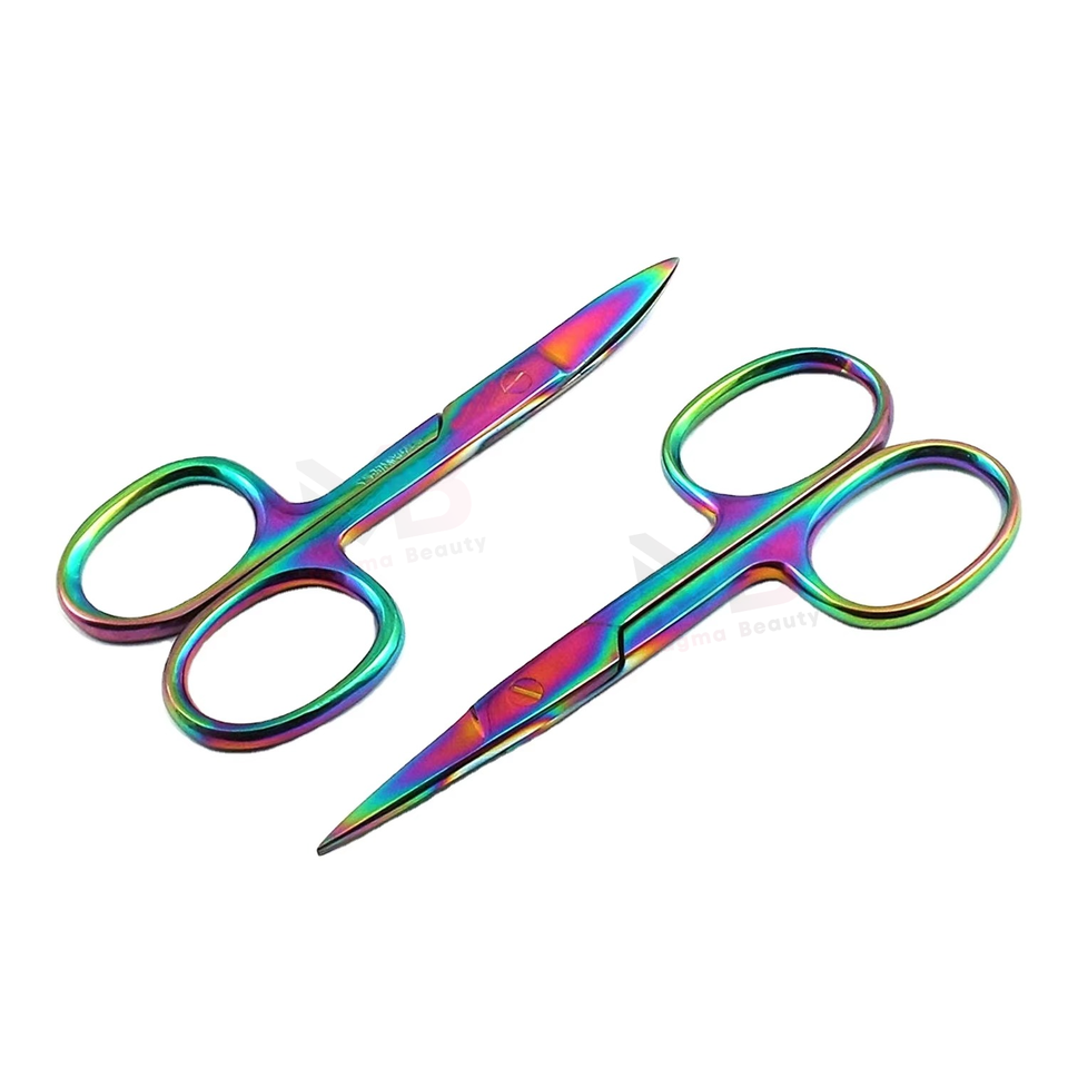 กรรไกรตัดเล็บและขนคิ้วใบโค้งเคลือบไทเทเนียมสีรุ้ง ทำจากเหล็กกล้าไร้สนิมคุณภาพสูง อุปกรณ์ทำเล็บ