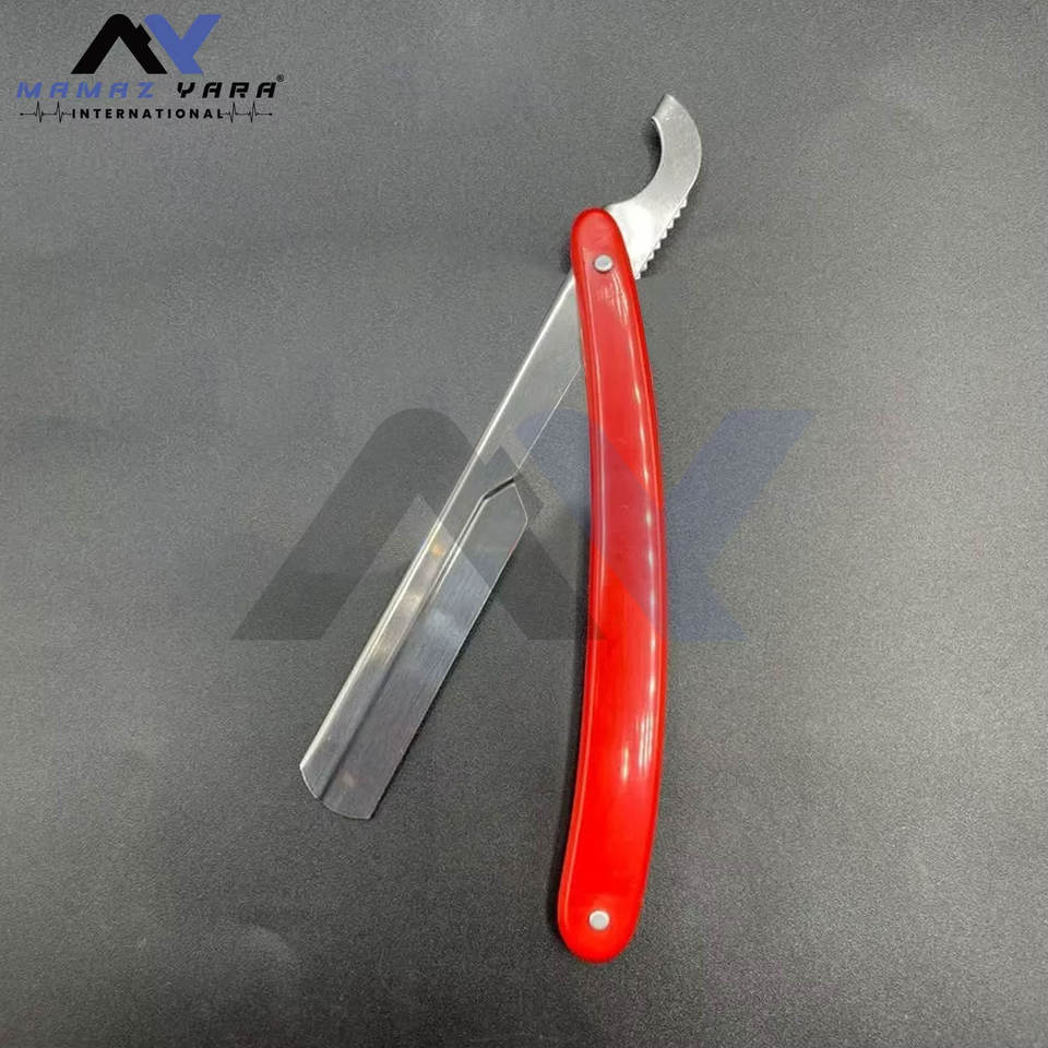 มีดโกนหนวดคุณภาพสูง ด้ามจับพลาสติกสีแดง ทำจากสแตนเลส พร้อมโลโก้สั่งทำพิเศษ สำหรับช่างตัดผมมืออาชีพ แบบตุรกี โกนได้เรียบเนียน ทนทาน