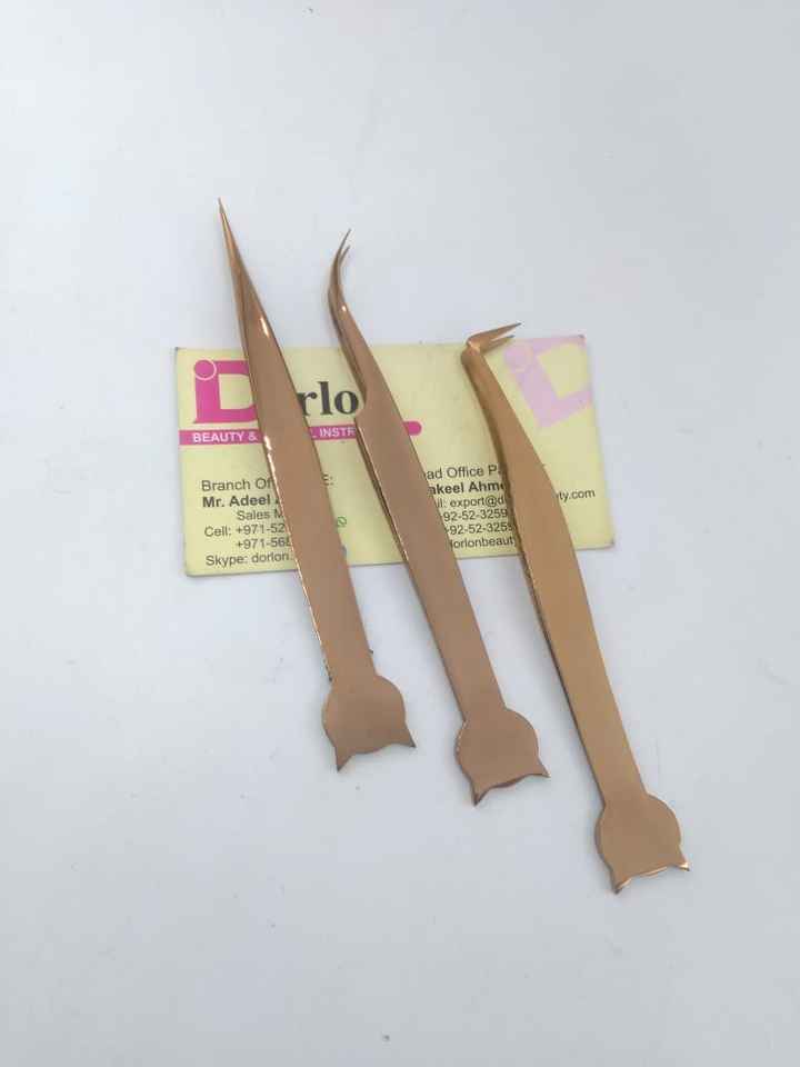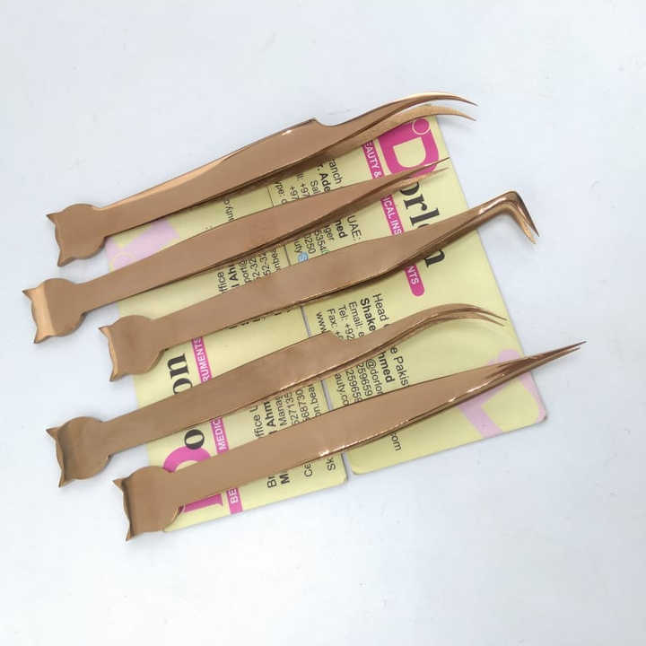 แหนบขนตาพลาสม่าสีโรสโกลด์แหนบปรับแต่งโลโก้ได้ตามต้องการ