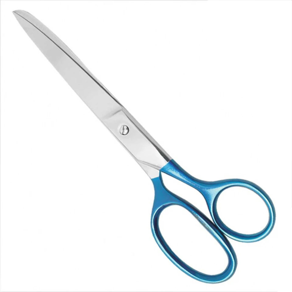 กรรไกรตัดเย็บคุณภาพสูงทำจากเหล็กกล้าไร้สนิม พร้อมด้ามจับเคลือบสีน้ำเงิน สำหรับงานเย็บผ้าและตัดด้ายสำหรับวัสดุผ้า