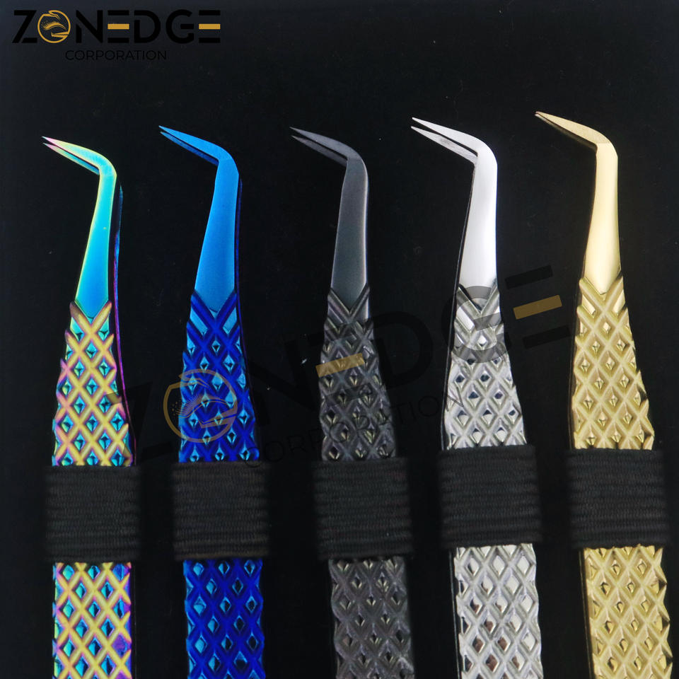 แหนบสำหรับต่อขนตาแบบมีด้ามจับทรงเพชรทำจากสเตนเลสสตีลทนทานปลายแหลมแบบมืออาชีพ
