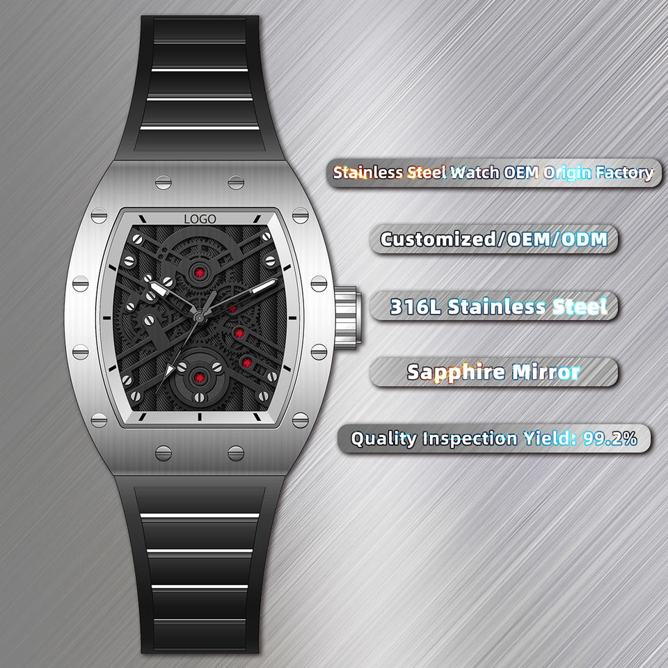 High Quality Stainless Steel Quartz Luxury Watch 20mm Band OEM Custom Logo Waterproof Tonneau Dial Wholesale Chinese Factory