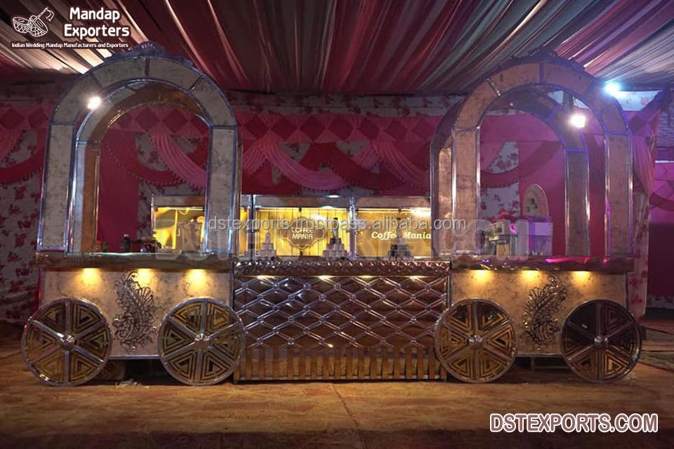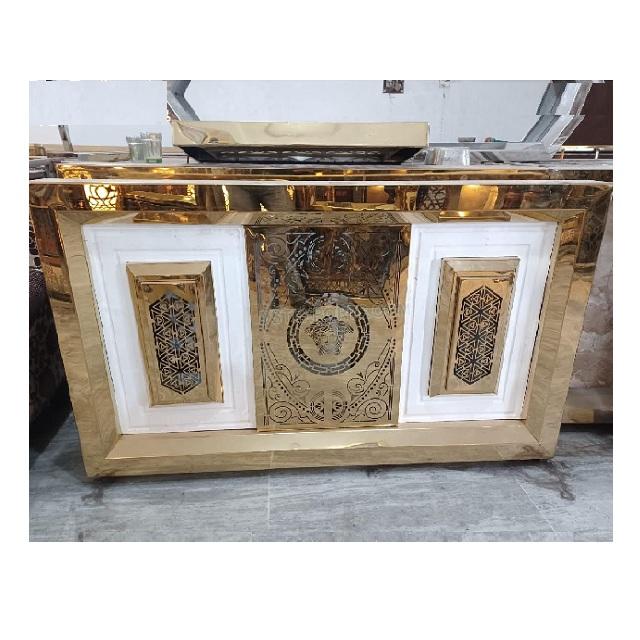 เคาน์เตอร์งานแต่งงานสแตนเลสคุณภาพสูง สไตล์โมเดิร์น น้ำหนักเบา ขนาดสั่งทำได้ สำหรับงานจัดเลี้ยงงานแต่งงานแบบอินเดีย สีทอง