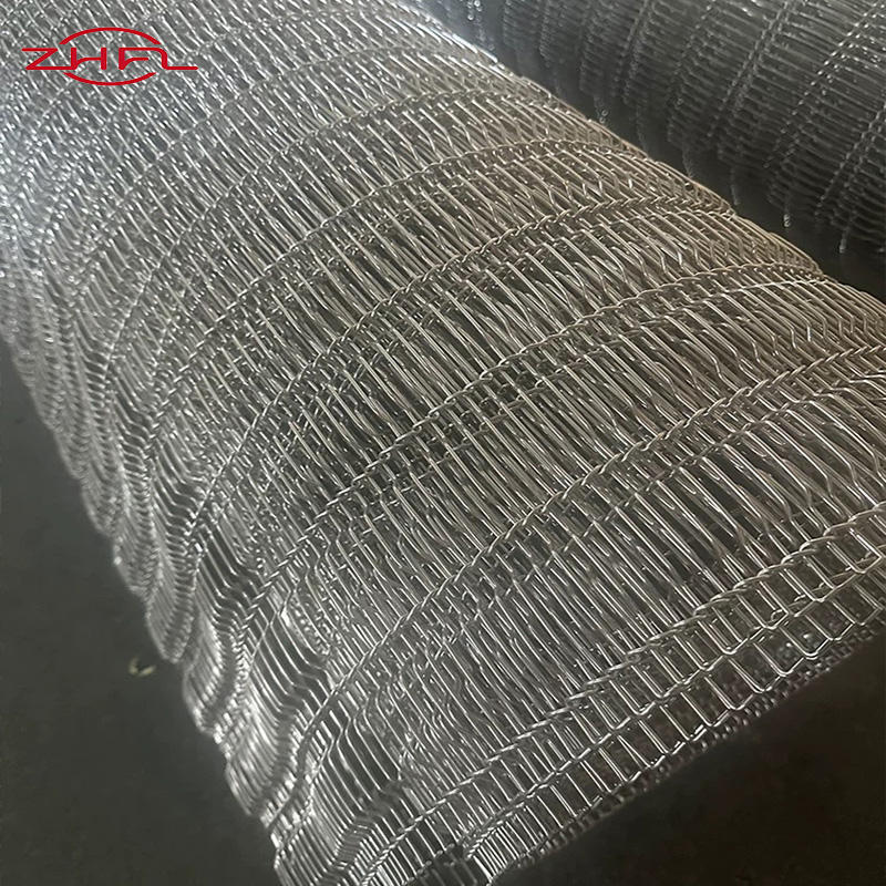รูปร่าง:สายพานลำเลียงแบบตาข่ายลูกโซ่, ลายข้าวหลามตัด, แบบผ้ากันเปื้อน, สายพานตาข่ายทรงกลม