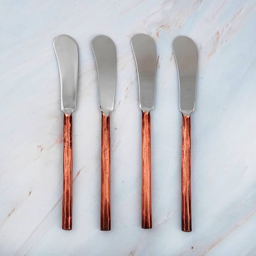 มีดหั่นเนยด้ามทองแดงสำหรับรับประทานอาหารเครื่องใช้บนโต๊ะอาหารดีไซน์ใหม่4ชิ้น