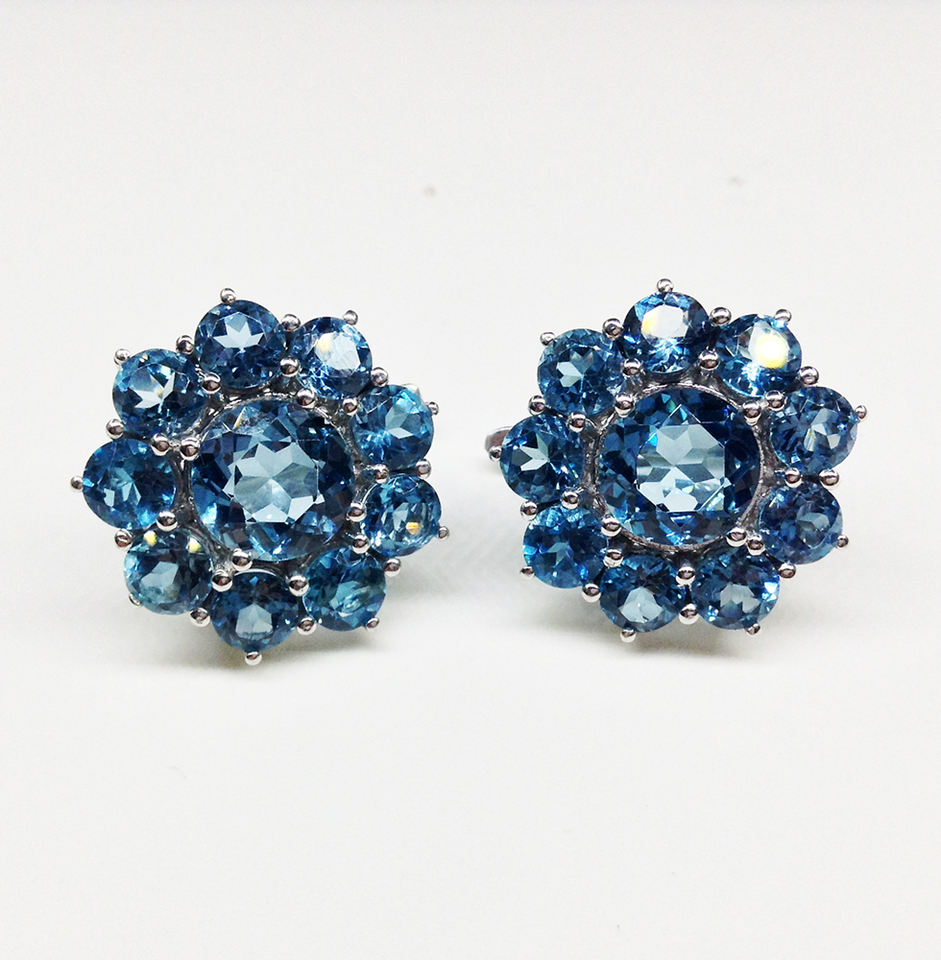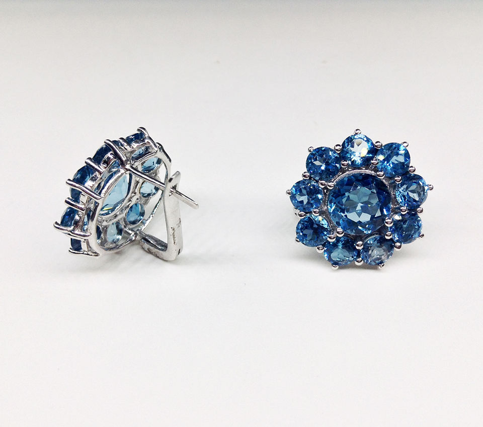 ที่มีคุณภาพสูงเงินสเตอร์ลิง925ที่กำหนดเองทำต่ำMOQผู้ผลิตขายส่งผู้หญิงราคาถูกพลอยสีฟ้าบุษราคัมลูกบาศก์ต่างหูสตั๊ด