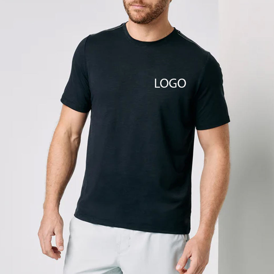 งานเย็บคุณภาพสูงสำหรับการสั่งซื้อจำนวนมาก ออกแบบโลโก้ตามสั่งสำหรับเสื้อยืดแขนสั้นผู้ชายสำหรับฤดูร้อน สวมใส่สบายและผ่อนคลาย