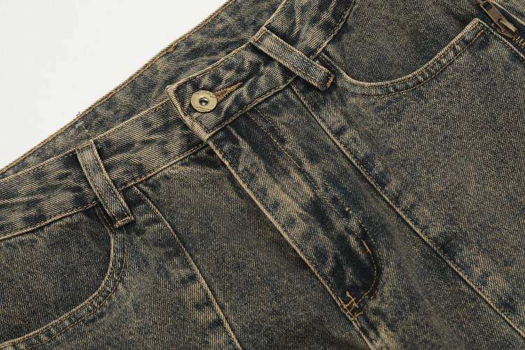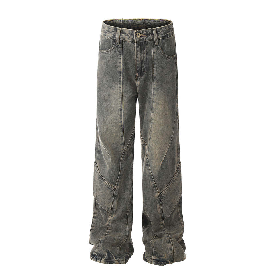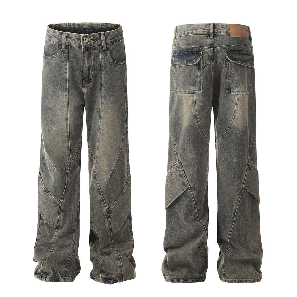 กางเกงยีนส์ทรงตรงผู้ชายคุณภาพสูง ผ้าฝ้าย 100% ซักแบบสโตนวอช ป้องกันการเป็นขุย เนื้อผ้าหนา ซิปหน้า
