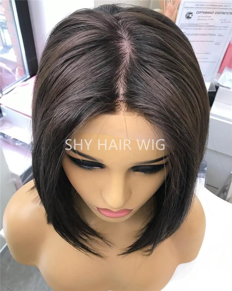 High Quality Straight Lace Front Bob Wig European Human Hair Brown Silk Top Small Knots White Woman High-end Lace Front Wigs