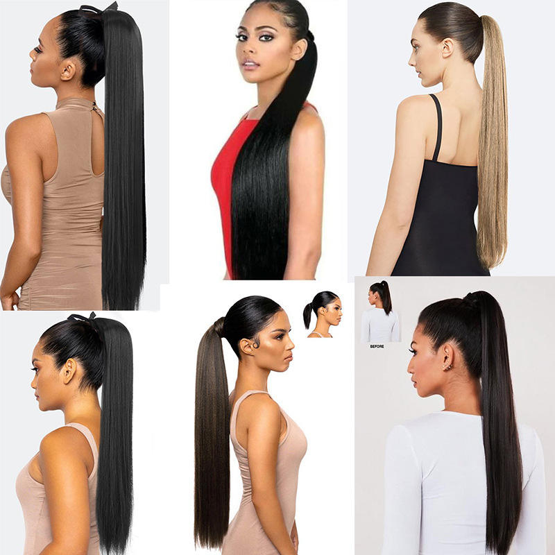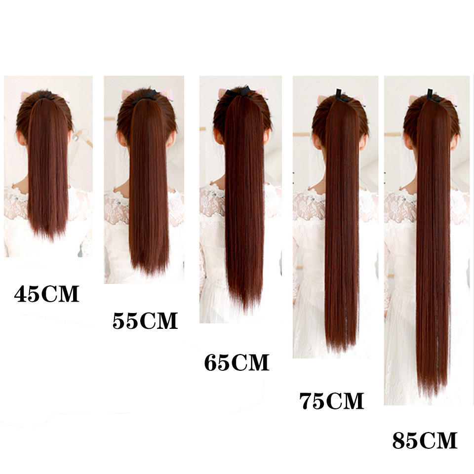 ต่อผมหางม้าตรงคุณภาพสูง ยาว 80 ซม. ติดง่าย สำหรับผู้หญิง วัสดุเส้นใยทนความร้อนสูง