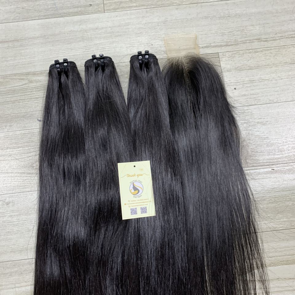 ผมต่อแบบตรงเป็นมัดตรงกลางส่วนบนลูกไม้สวิส2x6 HD ผมคนเวียดนาม