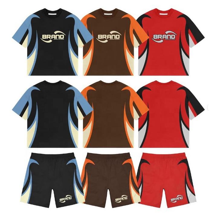 ชุดเซ็ตเสื้อผ้าสตรีทแวร์วินเทจคุณภาพสูงสำหรับฤดูร้อน ชุดกีฬาขาสั้นผู้ชาย รับผลิตแบบ OEM พร้อมสกรีนโลโก้ตามสั่ง สไตล์ Y2K ฮิปฮอป ลายพิมพ์ดิจิทัล