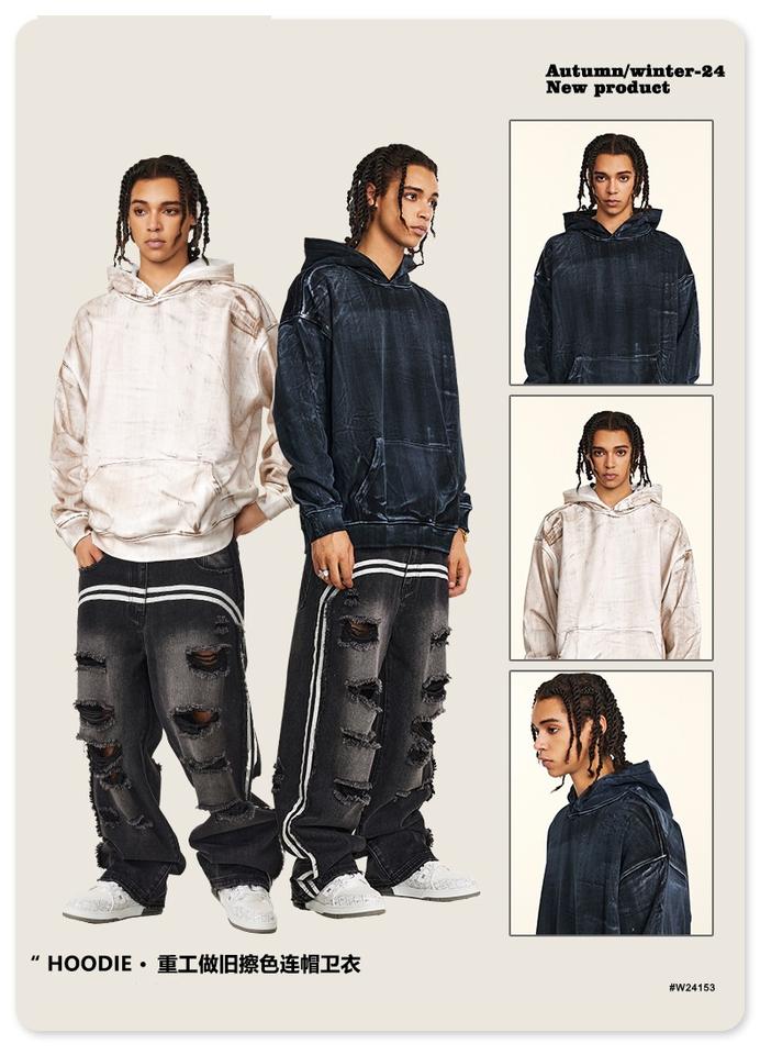 เสื้อสเวตเตอร์เสื้อฮู้ดสำหรับผู้ชายเสื้อสเวตเตอร์แบบสวมหัวมีฮู้ดสำหรับผู้ชายล้างน้ำสกปรกแนววินเทจ