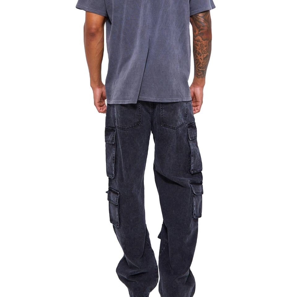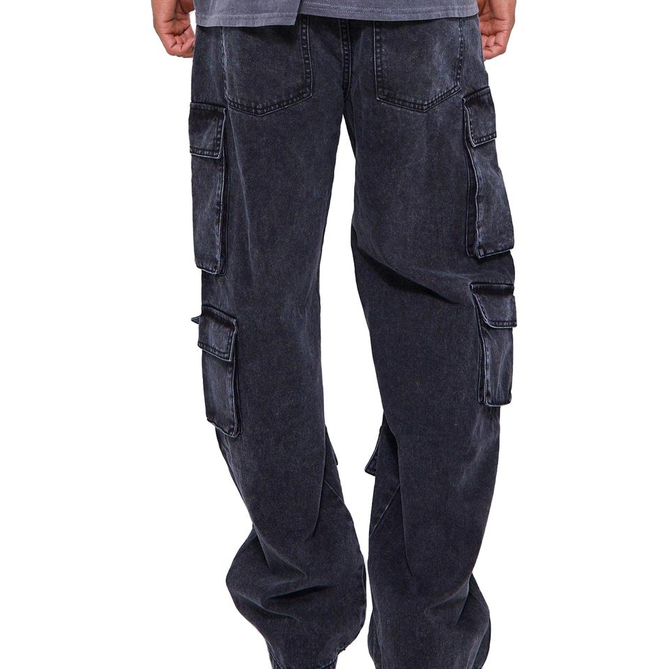กางเกงยีนส์สตรีทแวร์คุณภาพสูงสำหรับผู้ชาย พร้อมกระเป๋าคาร์โก้สีพื้นแบบสั่งทำพิเศษ กางเกงทรงหลวมสำหรับผู้ชาย ออกแบบตามสั่ง สวมใส่สบาย พร้อมบริการ ODM/OEM