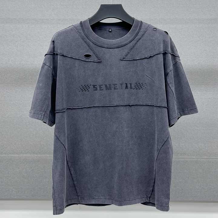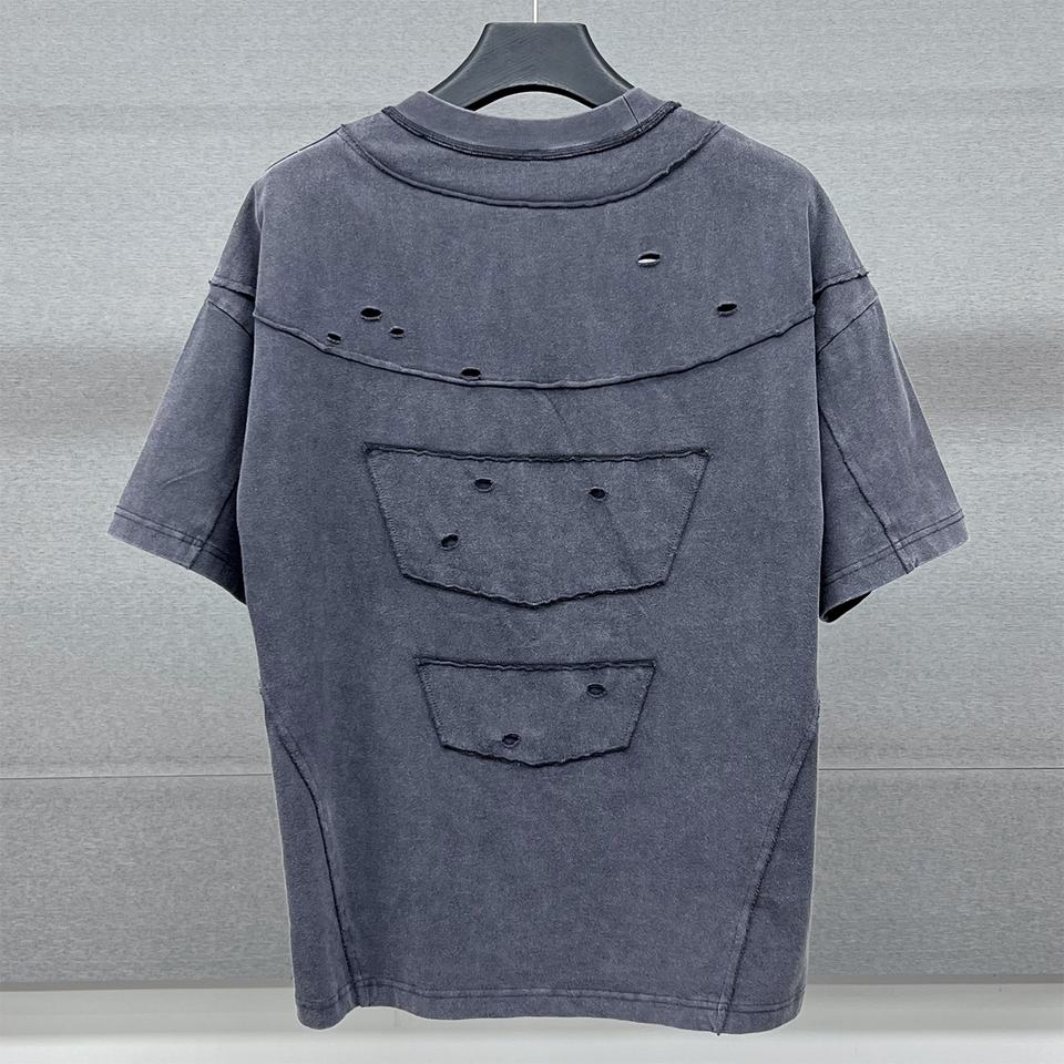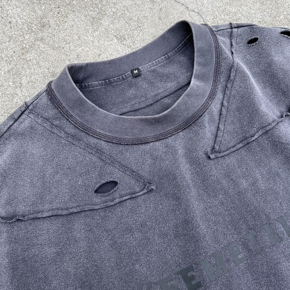 High Quality Streetwear Patchwork Hole Designer Shirt Print Heavy Weight Cotton T Shirt Oversized Acid Wash Distressed T-shirt