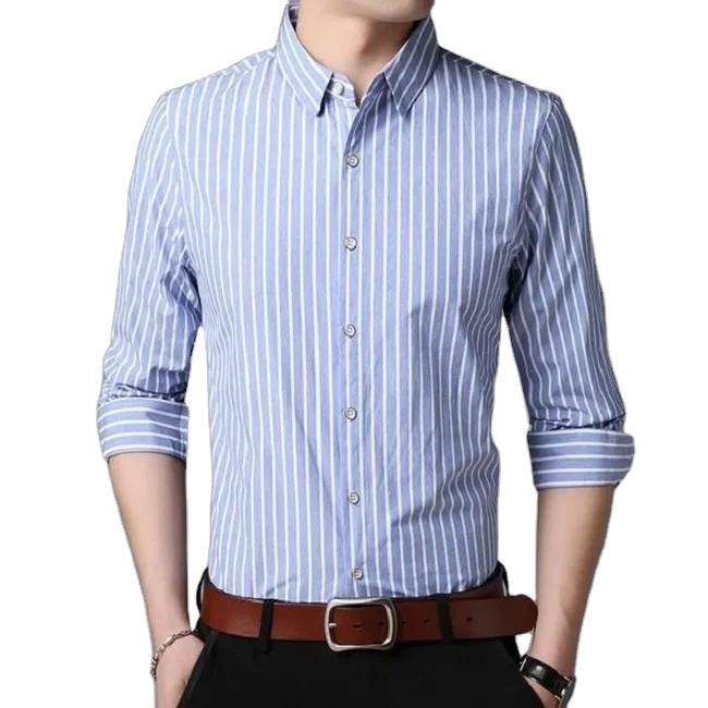 เสื้อเชิ้ตผู้ชายลายทางผ้าฝ้าย 100% แฟชั่นใหม่ ระบายอากาศได้ดี แห้งเร็ว เป็นมิตรกับสิ่งแวดล้อม เหมาะสำหรับฤดูร้อน ผ้าป๊อปลินคุณภาพสูง