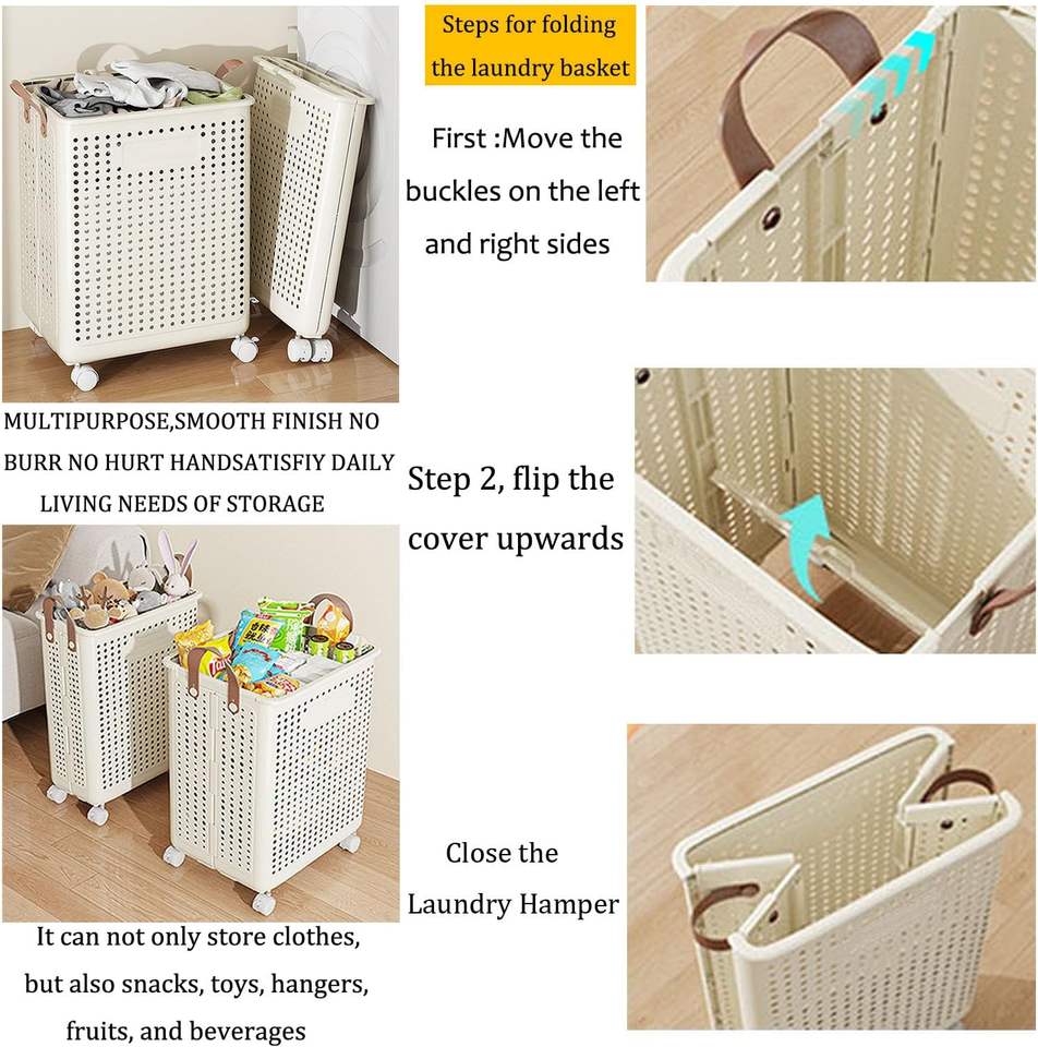 ตะกร้าใส่เสื้อผ้าพลาสติกตาข่ายแข็งแรงทนทานตะกร้าใส่เสื้อผ้าตะกร้าใส่เสื้อผ้าสำหรับเก็บของใช้ในบ้านพร้อมล้อ
