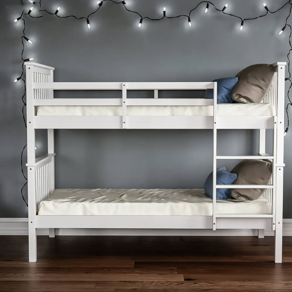เตียงสองชั้นไม้ขนาดทวินไซส์ทันสมัยสำหรับเด็กหลายคน เตียงสองชั้นไม้พร้อมบันได