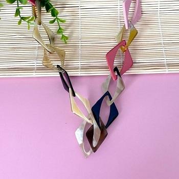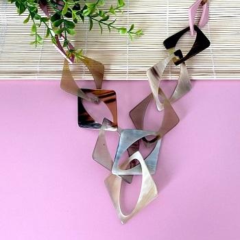 สร้อยคอจี้เขาควายทำด้วยมือทำจากไม้เรซินกระดูกโลหะทำด้วยเพชรและไข่มุก