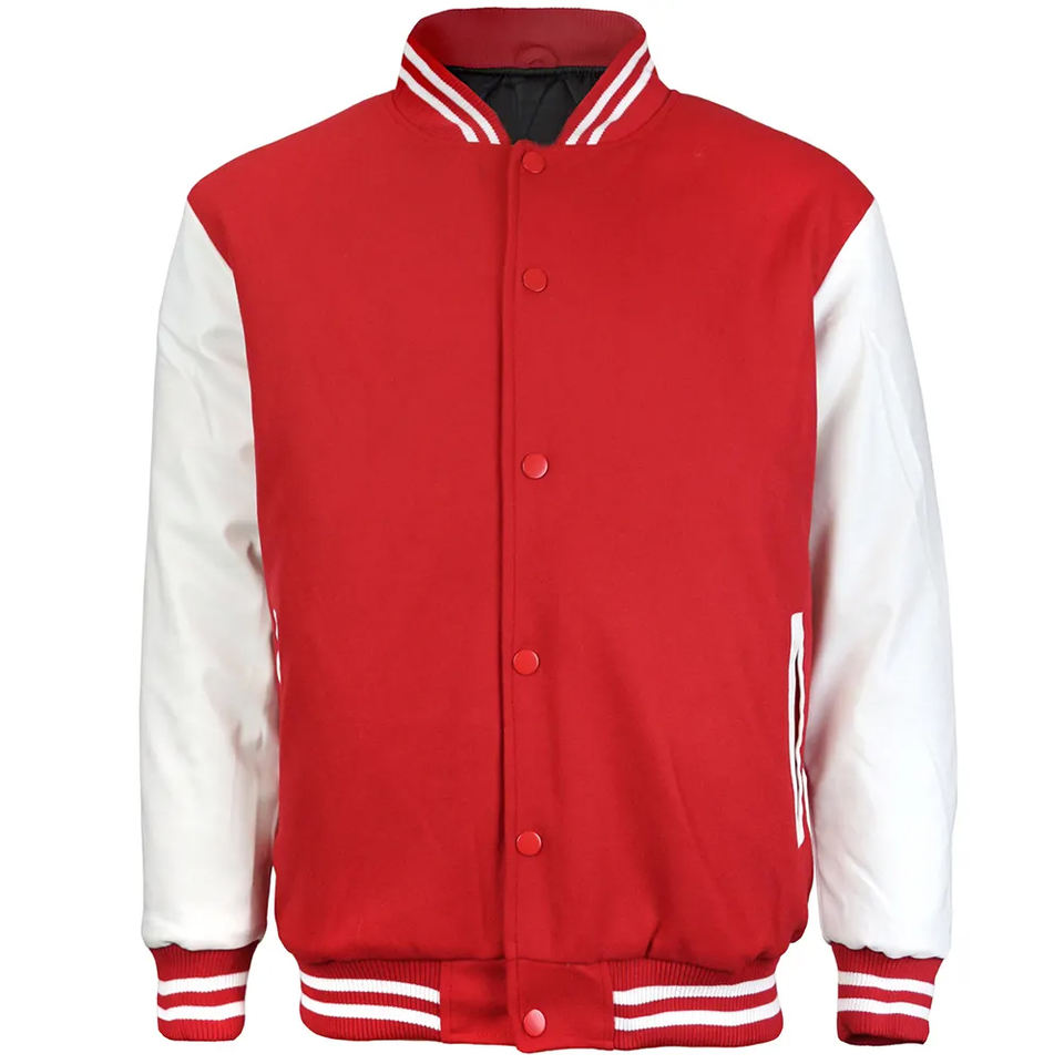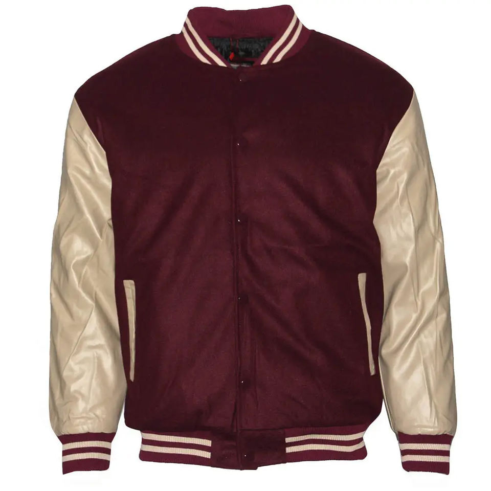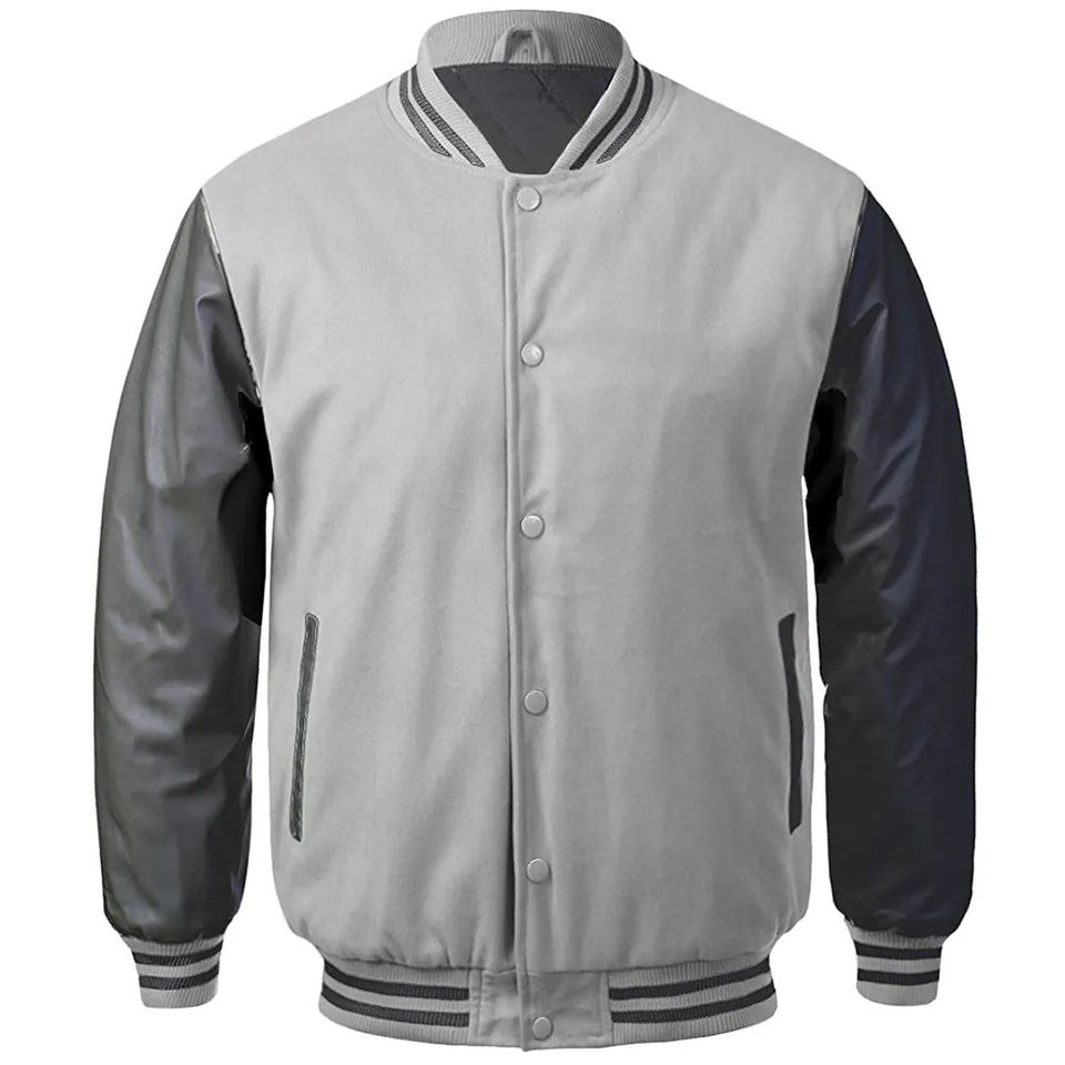 แจ็คเก็ตเบสบอลผู้ชายคุณภาพสูง ดีไซน์ทันสมัย ขายส่ง ปักโลโก้ได้ตามต้องการ แขนหนัง แต่งผ้าขนสัตว์ แฟชั่นใหม่ล่าสุด