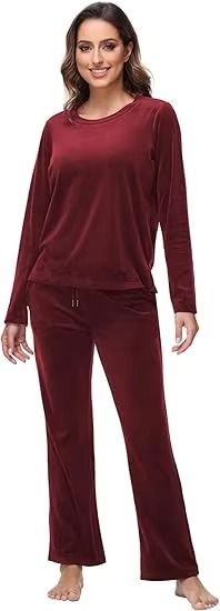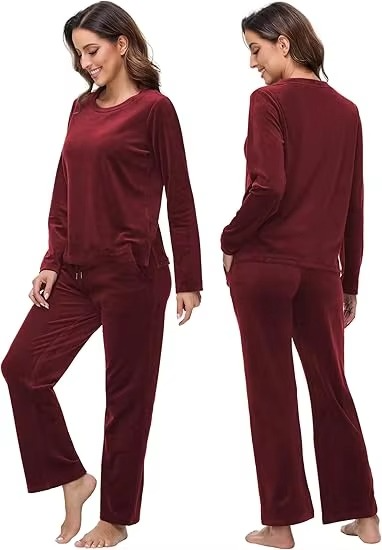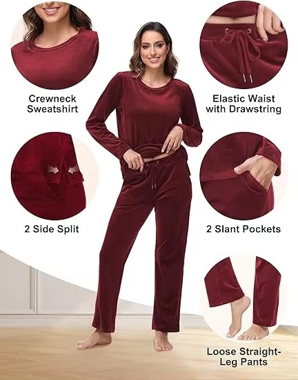 ชุดวอร์มกำมะหยี่สีแดงเบอร์กันดีคุณภาพสูง ทันสมัย สวมใส่สบายในฤดูหนาว ออกแบบได้ตามต้องการ สวยหรู ผู้ผลิตเสื้อผ้า OEM