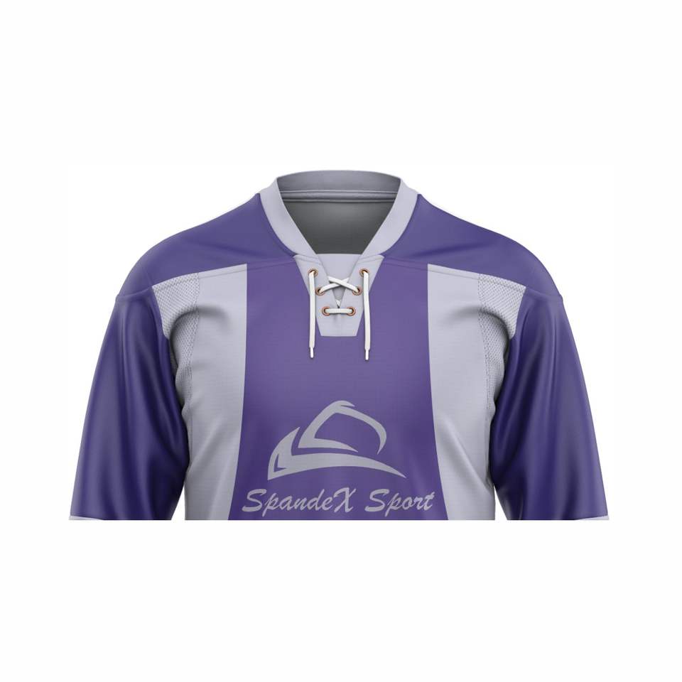 ชุดทีมฮ็อกกี้แบบระเหิดชุดเสื้อเจอร์ซีย์ฮ็อกกี้น้ำแข็งสีชมพูตลกพร้อมเครื่องแบบ