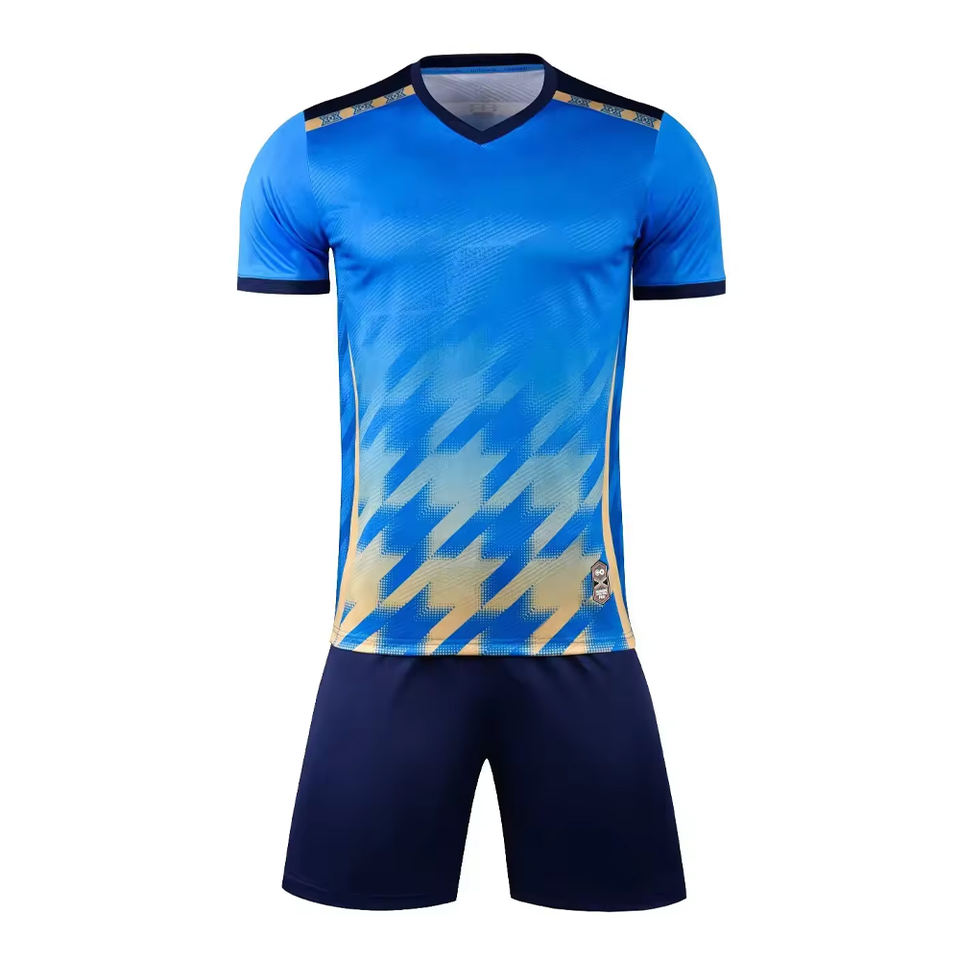 ชุดฟุตบอลชายคุณภาพสูงแบบซับลิเมชั่น เสื้อและกางเกงขาสั้น ขายส่ง รับผลิตตามแบบที่ต้องการ