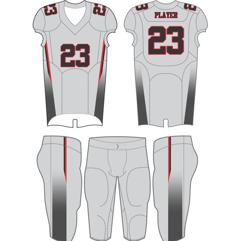 ชุดยูนิฟอร์มอเมริกันฟุตบอลพิมพ์ลายแบบซับลิเมชั่นคุณภาพสูง ผลิตจากโพลีเอสเตอร์ 100% ระบายอากาศได้ดี เหมาะสำหรับทีมและสโมสร