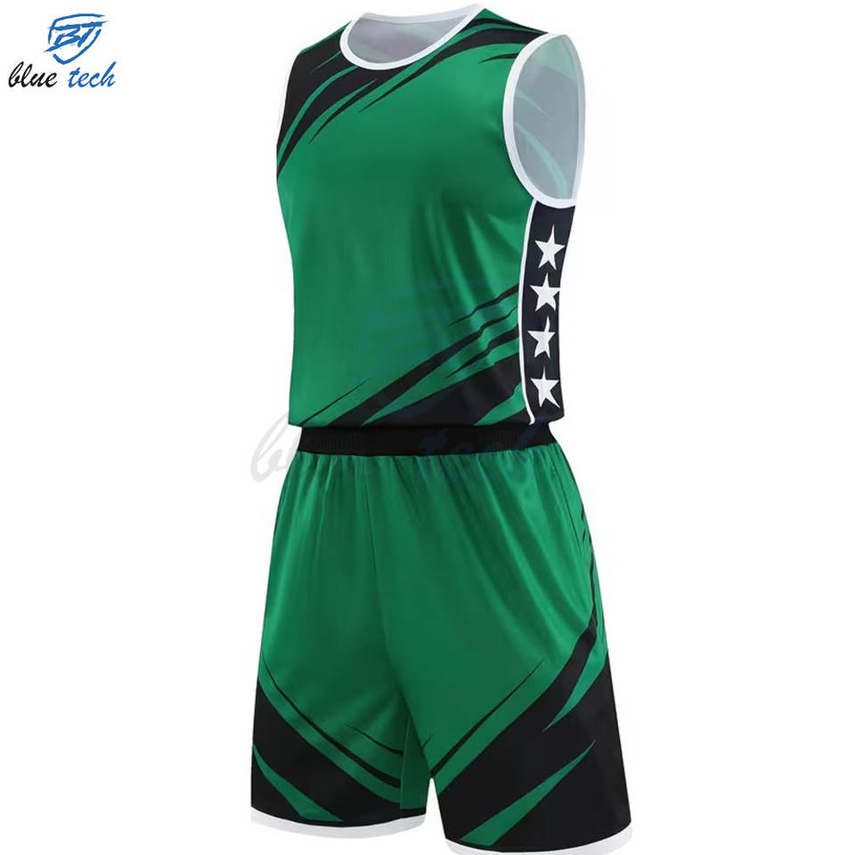 ชุดยูนิฟอร์มบาสเก็ตบอลฤดูร้อนคุณภาพสูงสำหรับผู้ชาย แบบไม่มีแขน ระบายอากาศได้ดี แห้งเร็ว ไซส์ใหญ่พิเศษ รับสกรีนโลโก้และออกแบบลายพิมพ์