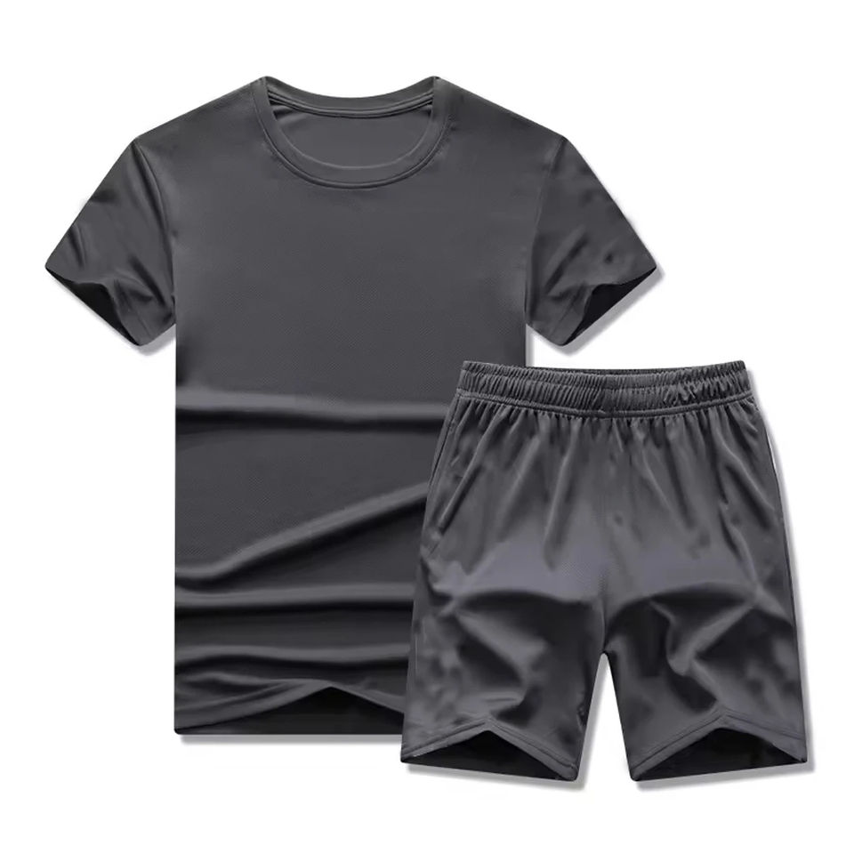 ชุดเซ็ตเสื้อยืดและกางเกงขาสั้นผู้ชายผ้าฝ้ายคุณภาพสูง ระบายอากาศได้ดี เหมาะสำหรับฤดูร้อน พร้อมโลโก้สั่งทำพิเศษ