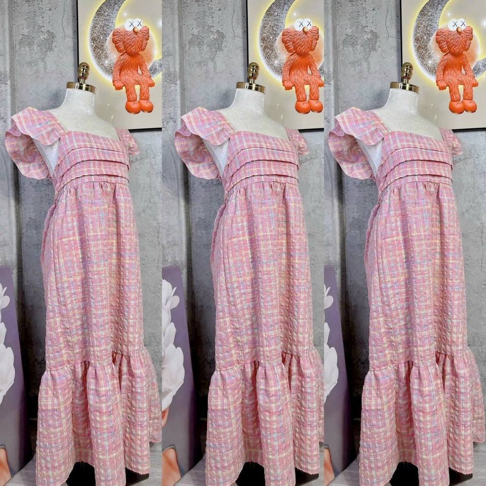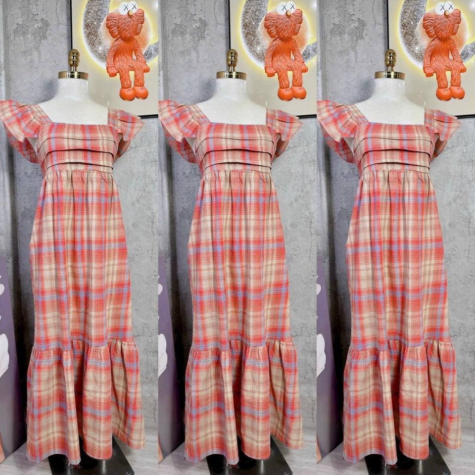 ชุดเดรสยาวแบบลำลองสำหรับฤดูร้อนชุดเดรสยาวลายลูกไม้แบบไม่มีปกเอวธรรมชาติบรรจุแยกเป็นชิ้น