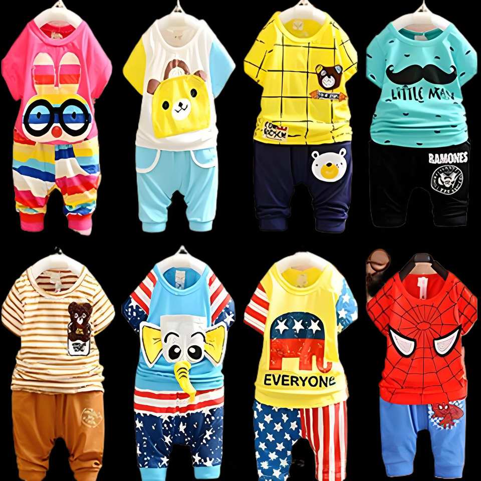 ชุดเสื้อผ้าเด็กคุณภาพสูงสำหรับฤดูร้อน ผ้าฝ้ายแฟชั่น ชุดเซ็ตแบบผสมผสาน สำหรับเด็กอายุ 0-12 ปี - ชุดเดรส เสื้อ กางเกง แบบมิกซ์แอนด์แมทช์ CN/GUA