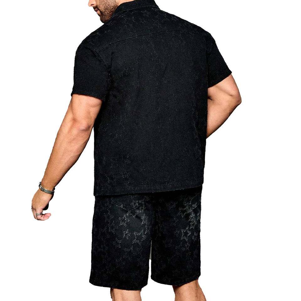 ชุดกางเกงขาสั้นลำลองสำหรับผู้ชายสำหรับฤดูร้อนเสื้อยืดแขนและกางเกงขาสั้นผ้ายีนส์ผ้าถักสวมใส่สบาย
