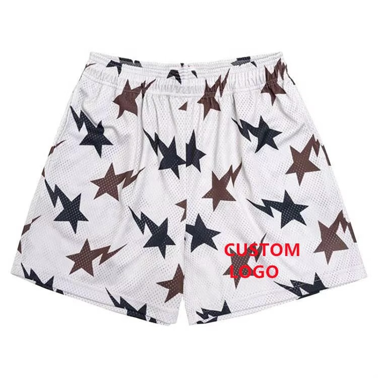 กางเกงขาสั้นออกกำลังกายสำหรับผู้ชายกางเกงขาสั้นผ้าฟลีซตาข่ายสำหรับใส่เล่นกีฬาดีไซน์แบบซับลิเมชันสำหรับผู้ชาย