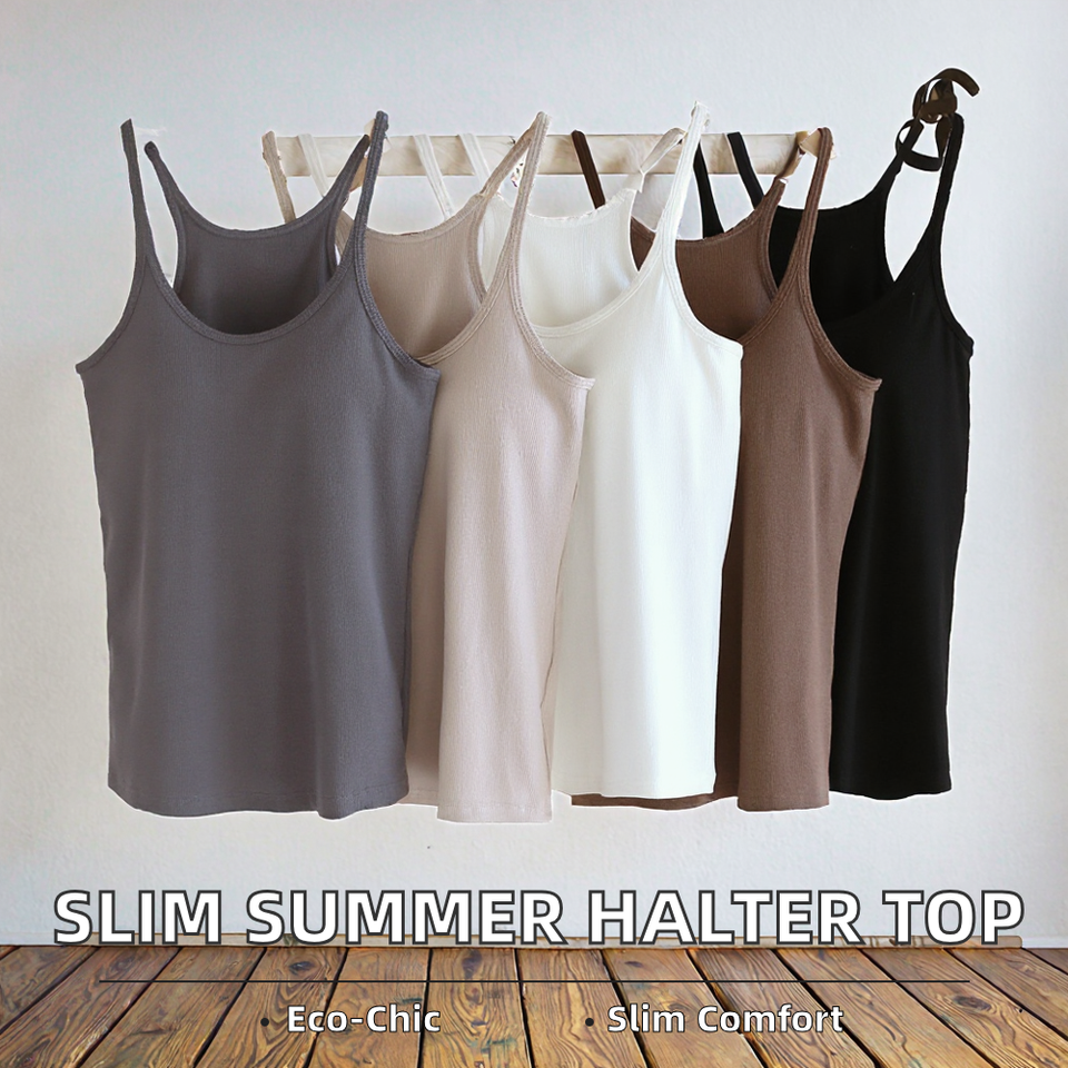 เสื้อกล้ามผู้หญิงคุณภาพสูงสำหรับฤดูร้อน แบบผูกคอ สวมใส่สบาย ทรงเข้ารูป โชว์หลังสวย ยาว ไม่มีโครงเหล็ก ไร้รอยต่อ ผลิตจากผ้าถัก