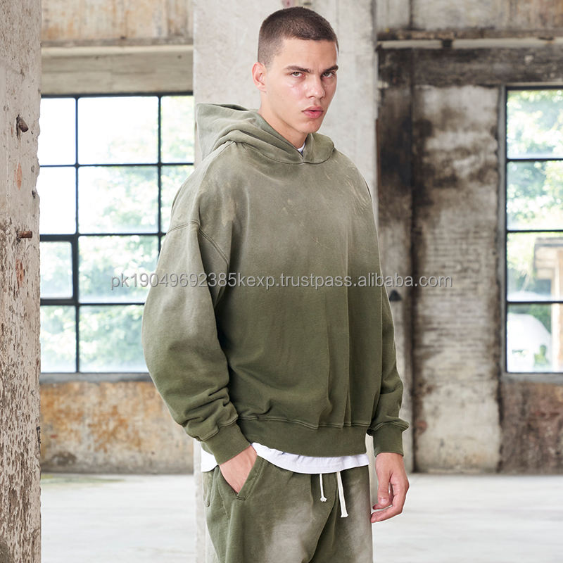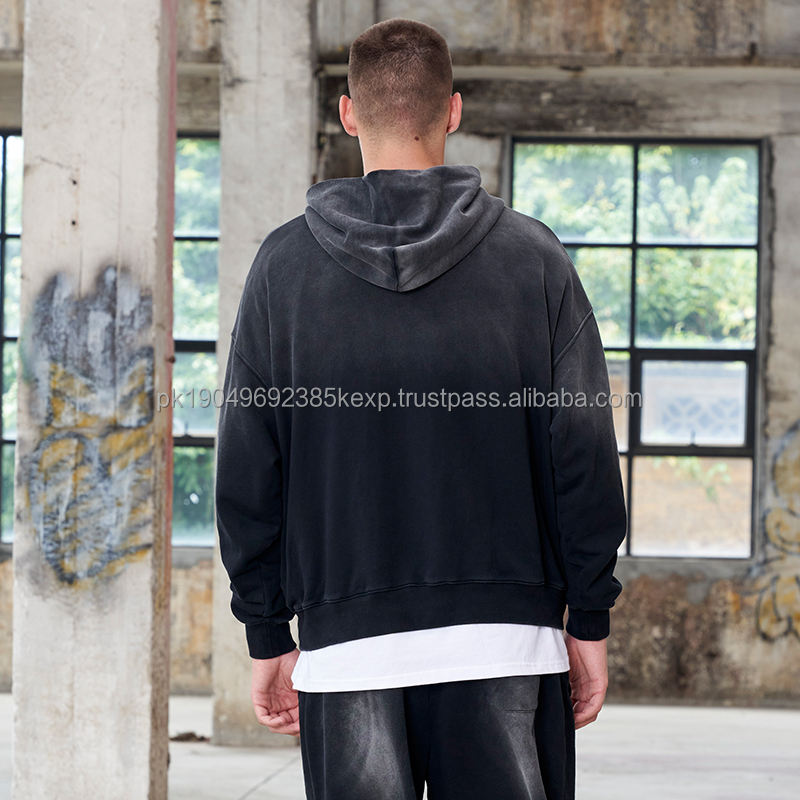 เสื้อฮู้ดดี้สตรีทแวร์ทรงบ็อกซี่ ผ้าบาติกฟอกสีซีดแบบคุณภาพสูง ทรงหลวมไหล่ตก สไตล์ผู้ชาย แบบสั่งทำพิเศษ ไซส์ใหญ่
