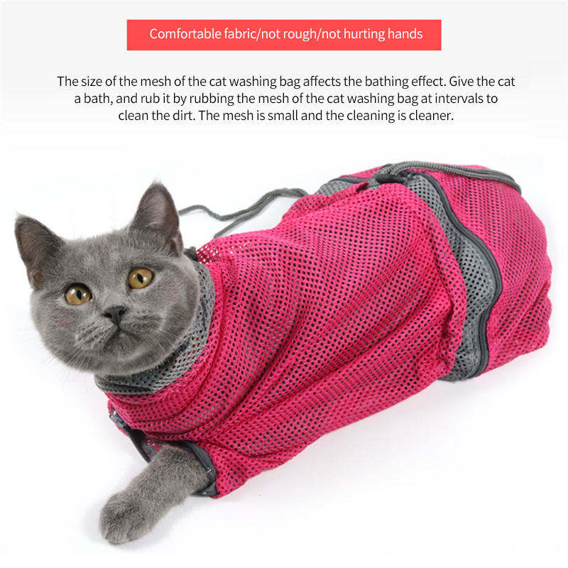 ถุงอาบน้ำสำหรับแมวคุณภาพสูง ผลิตจากโพลีเอสเตอร์ที่เป็นมิตรต่อสิ่งแวดล้อมและยั่งยืน สำหรับสัตว์เลี้ยงขนาดเล็ก - อุปกรณ์ทำความสะอาดสัตว์เลี้ยง